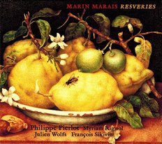 マラン・マレ(1656-1728):夢想 ヴィオール曲集第5巻(1725) 抜粋 組曲イ短調 から Prélude / Petit Caprice / Sarabande / Gigue / La Sincope / La Mariée Rondeau moitié pincé et moitié coups d'archet 組曲ヘ長調 から Prélude / Allemande la bois Guillaume / Sarabande / La Demoi Gigue Les Forgerons / Le Touché du Clavecin 組曲ト短調 から Prélude / Fantaisie / Sarabande / Gigue la Pagode 組曲ト長調 から Gigue la pointilleuse / Le Jeu du Volant / La Tatillone / Dialogue Chaconne 組曲ホ短調 Prélude / Allemande La Beuron / Sarabande Gavotte Singuliere - 2e Gavotte La Mignone / Menuet - 2e Menuet Le Contraste / Marche Persane dite La Savigny Le Tableau de l'Operation de la Taille [膀胱結石切開手術図](*) Les Relevailles - Suitte - Suitte / Resveries Mesplaiziennes